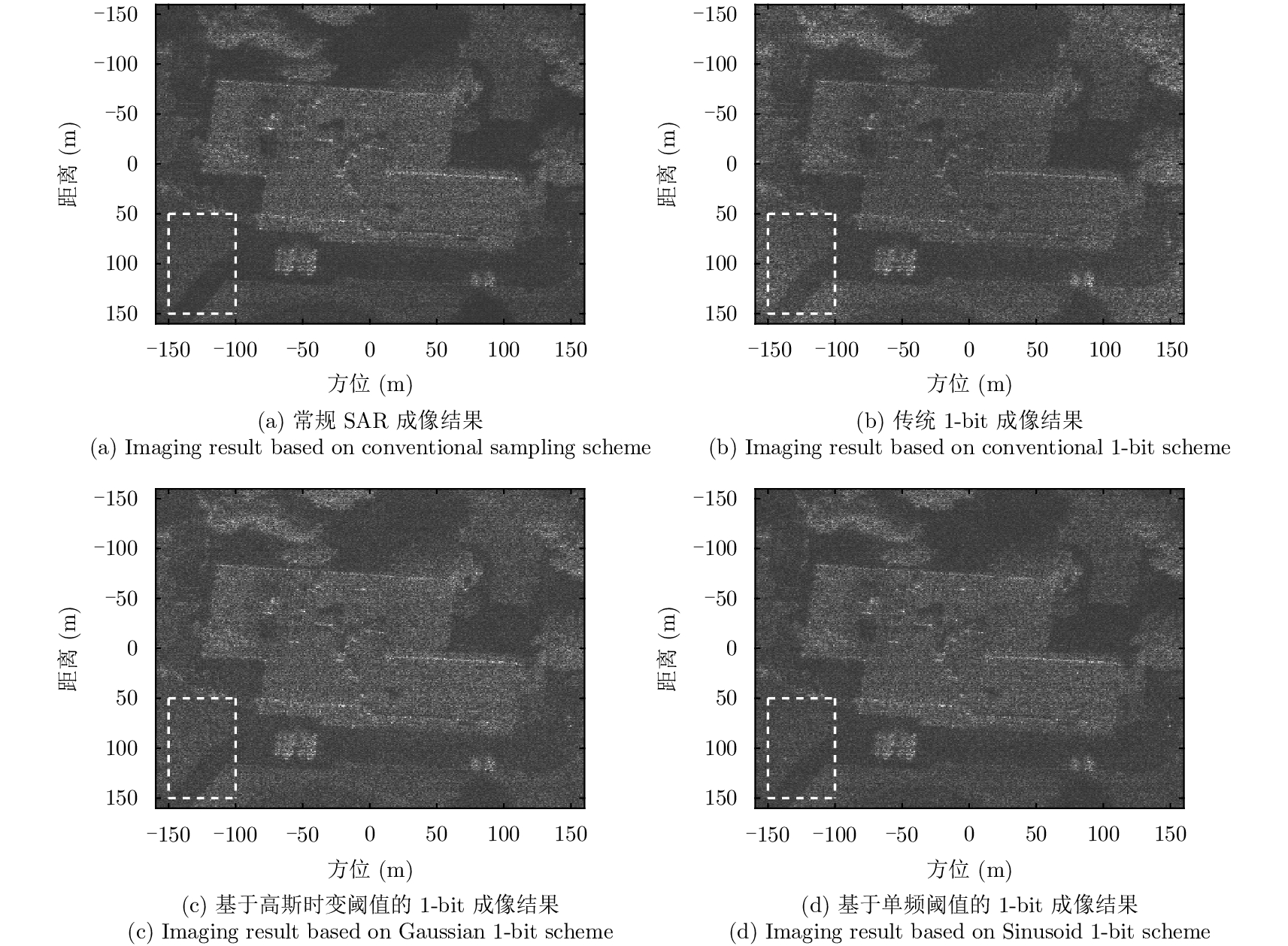 This paper proposes a 1-bit Synthetic Aperture Radar (SAR) imaging method based on a single-frequency time-varying threshold. Synthetic aperture radar echoes are quantized to 1-bit sampling data by comparing the data with the threshold; this reduces the data-width of the SAR echoes, consequently simplifying the system and improving efficiency. The conventional 1-bit sampling compares the signal to a zero threshold, bringing nonlinear distortion to the relative amplitude and degrading the imaging quality. The random threshold can keep the amplitude information, but it introduces additional noise-like interferences. In contrary, the single-frequency time-varying threshold can maintain the amplitude information lost during the 1-bit sampling and quantization, and at the same time, eliminate noise-like interferences; thus, the imaging quality of SAR using 1-bit sampling and quantization can be improved. The focusing quality and the amplitude-maintaining ability of the proposed approach is quantitatively analyzed, and the effectiveness of the approach is verified by an imaging experiment on a scene.