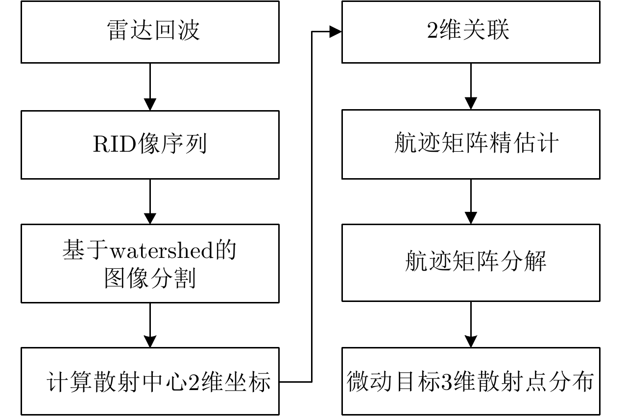 Micromotion refers to the small and non-uniform motion of the target or several target components along the radar line of sight. Using the high-resolution three-Dimensional (3D) Inverse Synthetic Aperture Radar (ISAR) imaging, the structural information and motion status of micromotion targets can be obtained, providing essential features for the detection, tracking, identification, and classification, which play important roles in the space situation awareness and ballistic missile defense. Given the complex micromotion forms and the non-stationary radar echoes, the available parametric ISAR imaging methods are no longer applicable. To overcome this limitation, this study aims to propose a high-resolution 3D imaging method for micromotion targets based on the scattering center trajectory matrix decomposition. First, the Range Instantaneous Doppler (RID) image series is generated to extract the support region of scattering centers by the watershed method. Then, the scattering center association is achieved based on the minimum Euclidean distance criterion. Considering the insufficient accuracy in the instantaneous slant range estimation with limited range resolution, a method for refined estimation of the trajectory matrix based on the modern spectrum analysis is proposed. Finally, the high-resolution 3D imaging of the micromotion targets is obtained by the trajectory matrix decomposition with constraints. The simulation results have demonstrated that the proposed method could effectively obtain high-resolution 3D imaging of the targets in complex micromotions such as nutation.