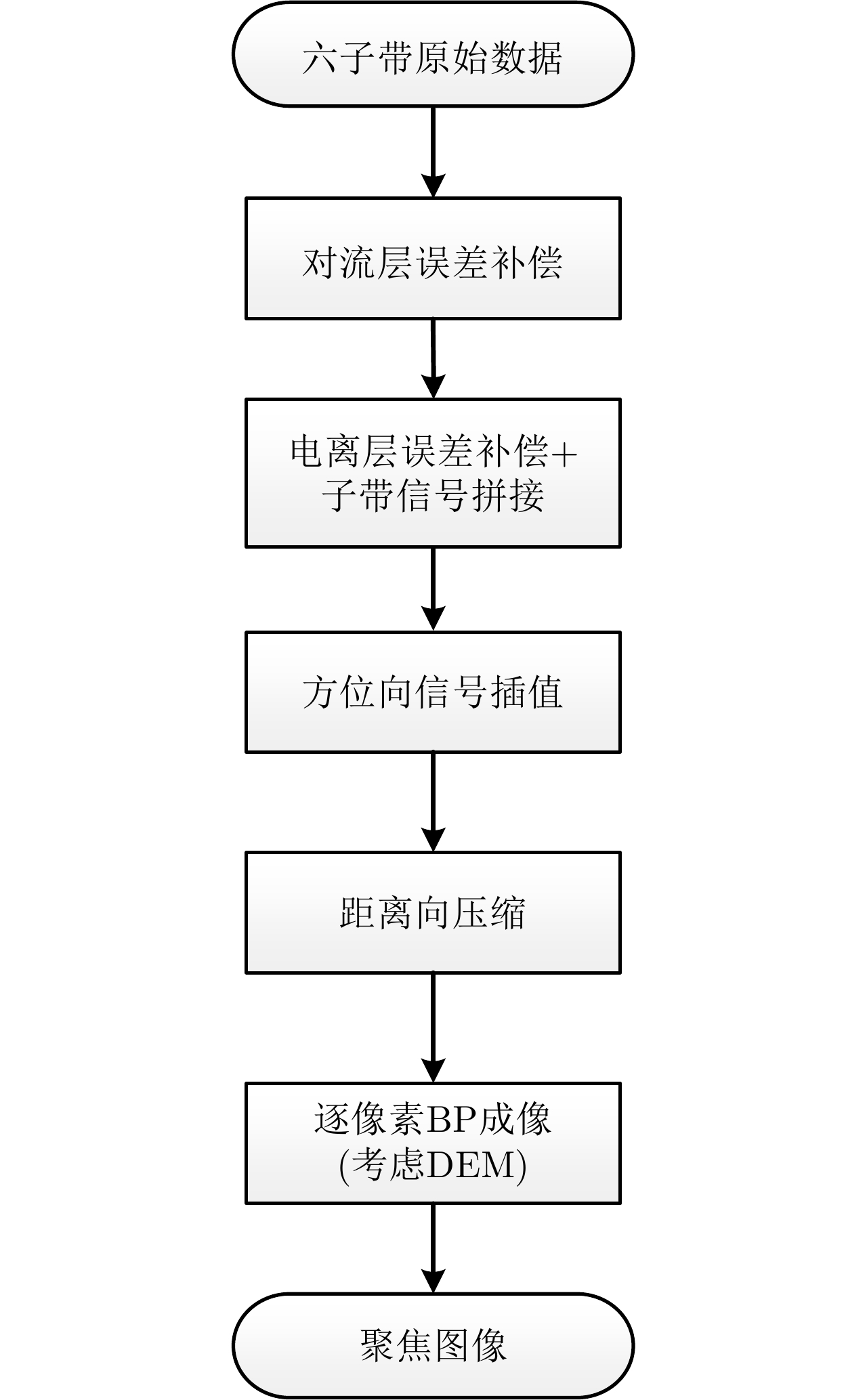 Spaceborne Synthetic Aperture Radar (SAR) is a type of microwave imaging radar with 2D high resolution. This technological device achieves range high resolution by transmitting wideband signals and azimuth high resolution through the synthetic aperture approach. With the increasing demand for high-resolution imaging, the resolution of spaceborne SAR has moved toward the decimeter level. On the one hand, limited by the present hardware technology, achieving wideband signal transmission through stepped-frequency technology is necessary. In this case, we need to study high-precision bandwidth synthesis technology. The influence of slant range error and amplitude and phase error between sub-bands should be considered. On the other hand, due to limited beamwidth, the system needs to work in sliding spot mode to achieve a long synthetic aperture. In this case, we need to study the problem of imaging parameter variance caused by curved orbit, “Stop–go” error, and the influence of ionospheric and tropospheric transmission errors on imaging. To solve these problems, this paper introduces the principle of stepped-frequency signal design and bandwidth synthesis technology in detail. A time-domain algorithm and non-ideal factor compensation method are proposed for spaceborne high-resolution stepped-frequency SAR imaging. Finally, simulation verification and performance analysis of the imaging algorithm are conducted.