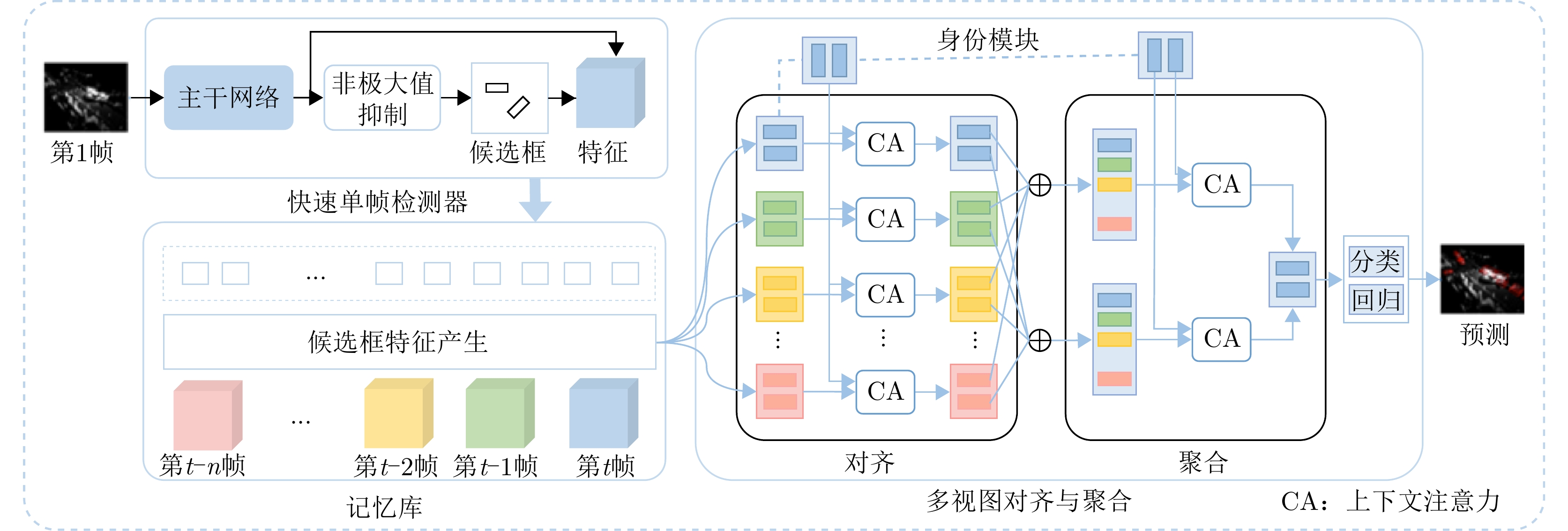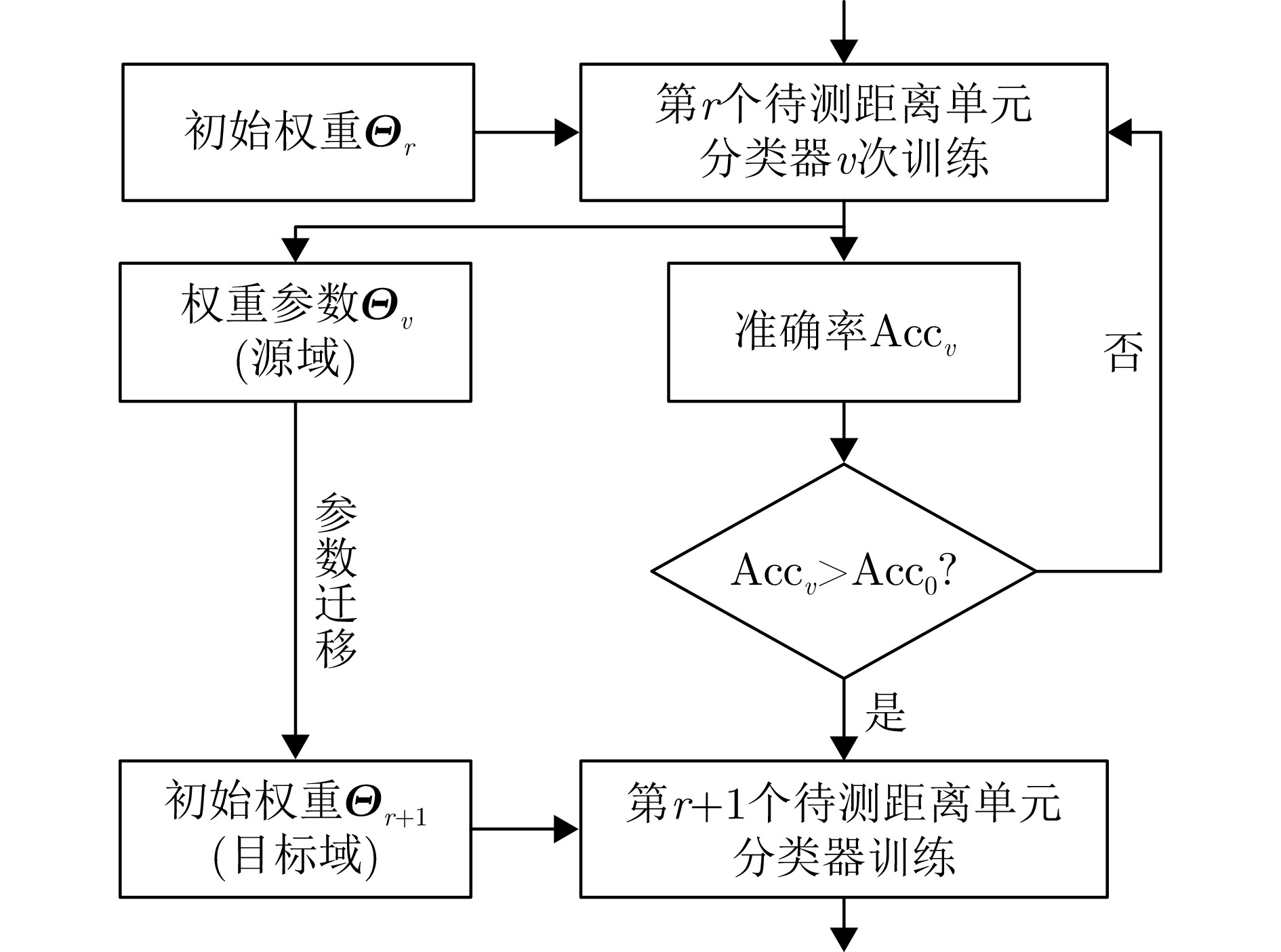 Existing moving-target detection methods for missile-borne sum-difference beam radars require large amounts of training range cell data, yet still exhibit low detection performance. To address these challenges, this paper proposes a new detection method based on intelligent multiclassification and network parameter transfer learning. The proposed method uses a small set of training range cell data to construct a dataset for training a deep Convolutional Neural Network (CNN), which classifies data from the Range Cell Under Test (RCUT) into clutter (target-free) or target classes with different Doppler frequencies. To avoid the high computational cost and time associated with online training on measured data, an echo signal model is first established for moving target detection in the missile-borne sum-difference beam radar. This model is validated using measured data and subsequently used to generate simulated data for offline network training. In addition, to overcome common limitations of typical CNNs, such as large parameter sets, high computing complexity, and low training efficiency, this paper enhances the DenseNet architecture by incorporating a Feature Fusion Module (FFM) and a Spatial Attention Module (SAM), resulting in an improved FFM-SAM-DenseNet multiclassifier. Furthermore, conventional detection methods based on intelligent multiclassification require retraining the network when processing data from different RCUTs, leading to long convergence time and reduced efficiency. To solve this problem, transfer learning is introduced to share network parameters across multiclassifiers for different RCUTs, accelerating the overall convergence speed. Simulation and measured data show that, even with limited training range cell data, the proposed method achieves better moving target detection performance than existing typical methods.