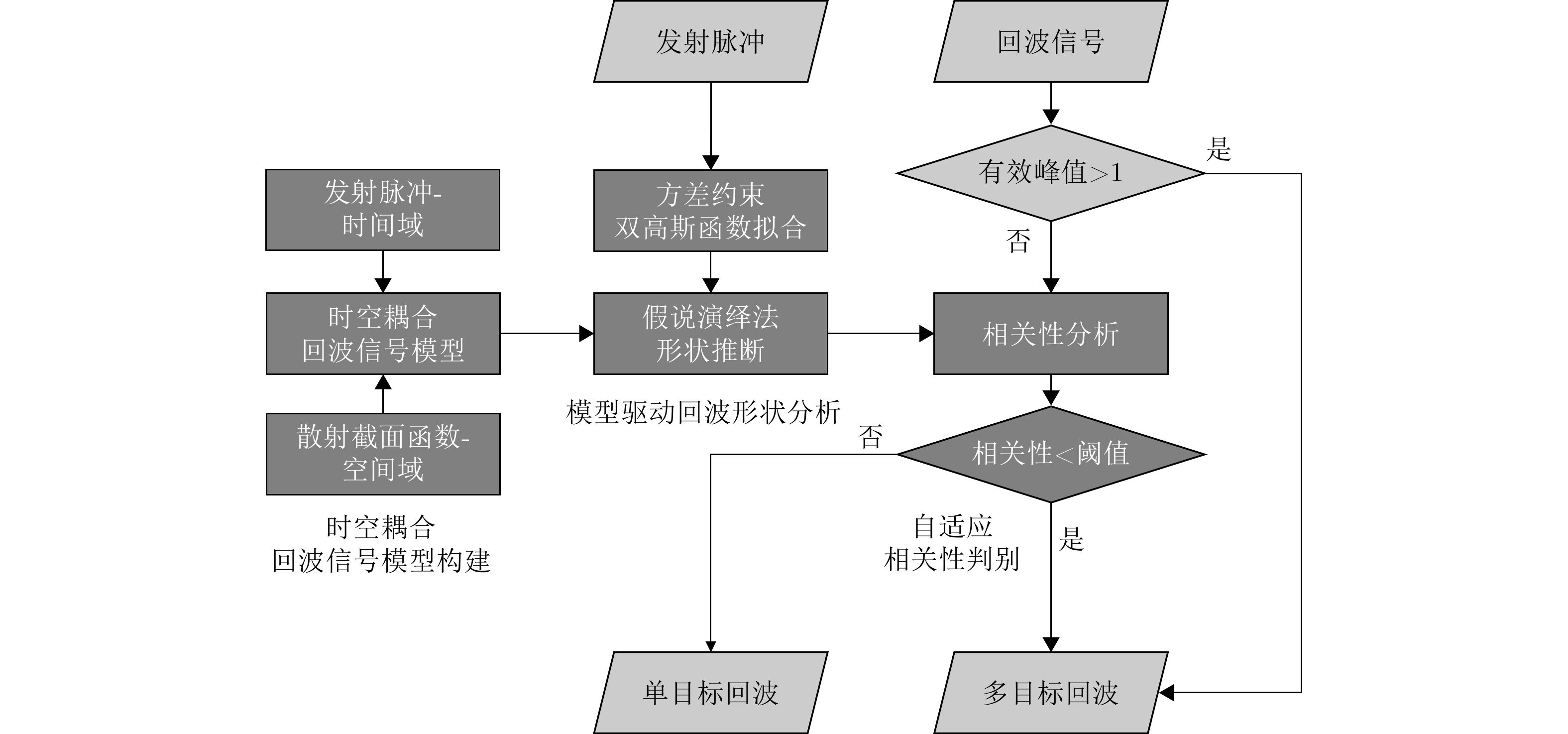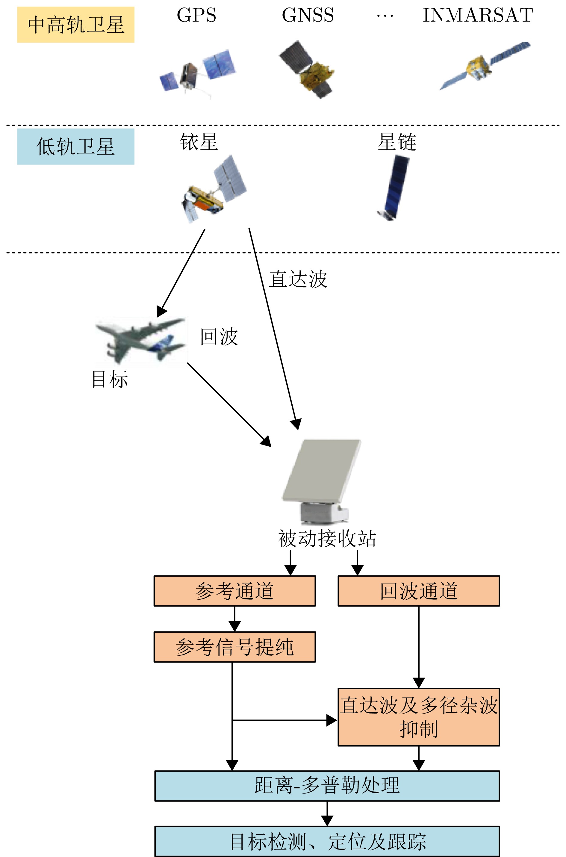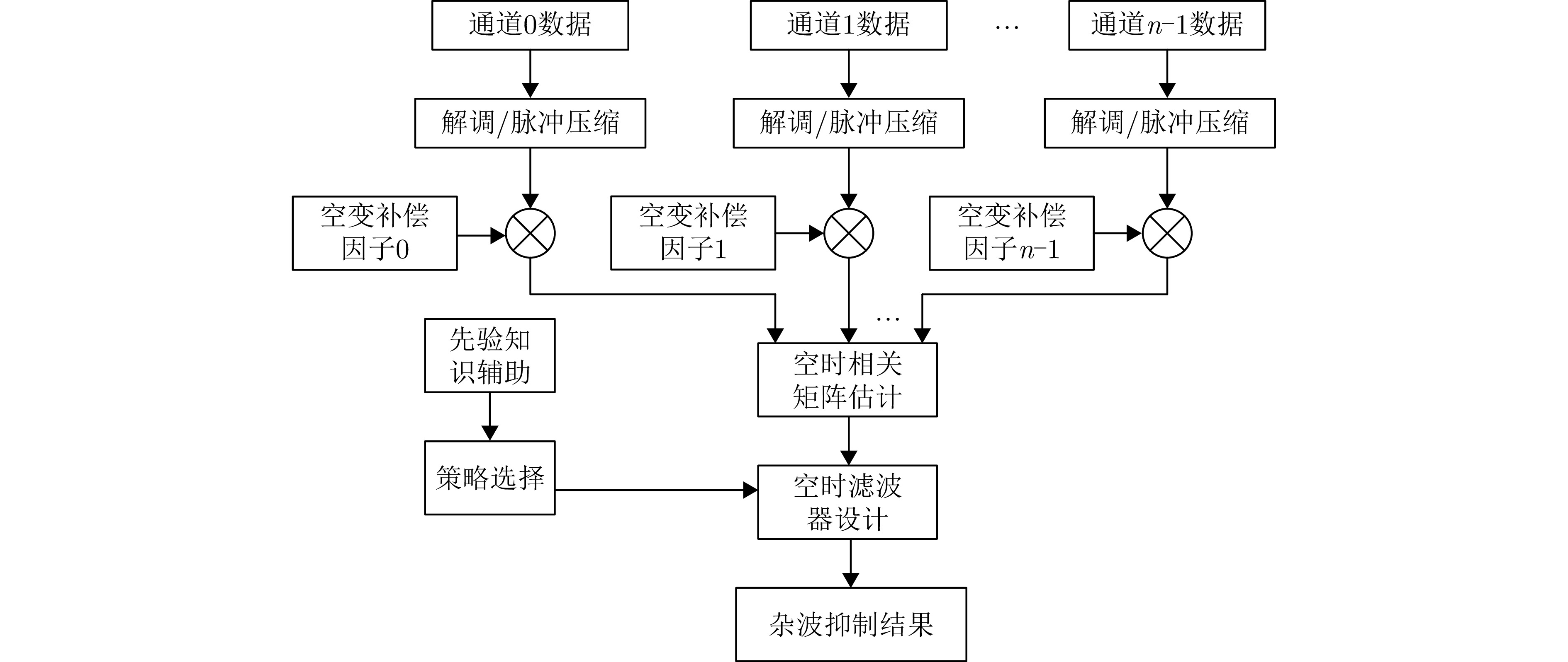 Clutter suppression is an important technology for moving target indication. However, for Bistatic Synthetic Aperture Radar (BiSAR) moving target indication, traditional space-time adaptive processing and displaced phase center antenna methods cannot achieve the expected clutter suppression because of the strong coupling nonlinearity and nonstationarity of clutter. To address the aforementioned challenge, this study proposes a dual-channel clutter cancellation processing method via space-time decoupling for airborne BiSAR. The core lies in establishing the space-time decoupling matrix, which converts the strongly coupled nonlinear two-dimensional space-time spectrum of airborne BiSAR into that with consistent spatial frequency. The proposed method mainly consists of the following steps: (1) To improve the signal-to-clutter-plus-noise ratio of moving targets, the first-order Keystone transformation and high-order range migration correction function are applied to concentrate the energy of moving targets in the same range cell. (2) To weaken the azimuth spectrum expansion effect caused by the motion of bistatic platforms, the Doppler frequency rate term is compensated for each range cell. (3) To achieve clutter cancellation, the space-time decoupling matrix is introduced. The normalized Doppler frequency remains unchanged, and the clutter atoms on the airborne BiSAR space-time plane are linearly transformed into atomic positions with the same normalized spatial frequency. Then, the echo signals of dual channels are subtracted for effective clutter suppression. The effectiveness of the proposed method for airborne BiSAR clutter suppression is demonstrated through simulation and real data processing.