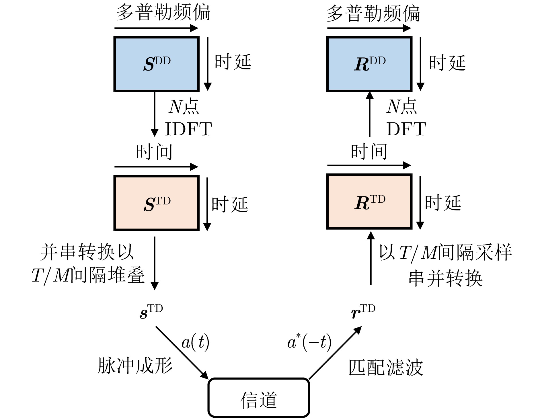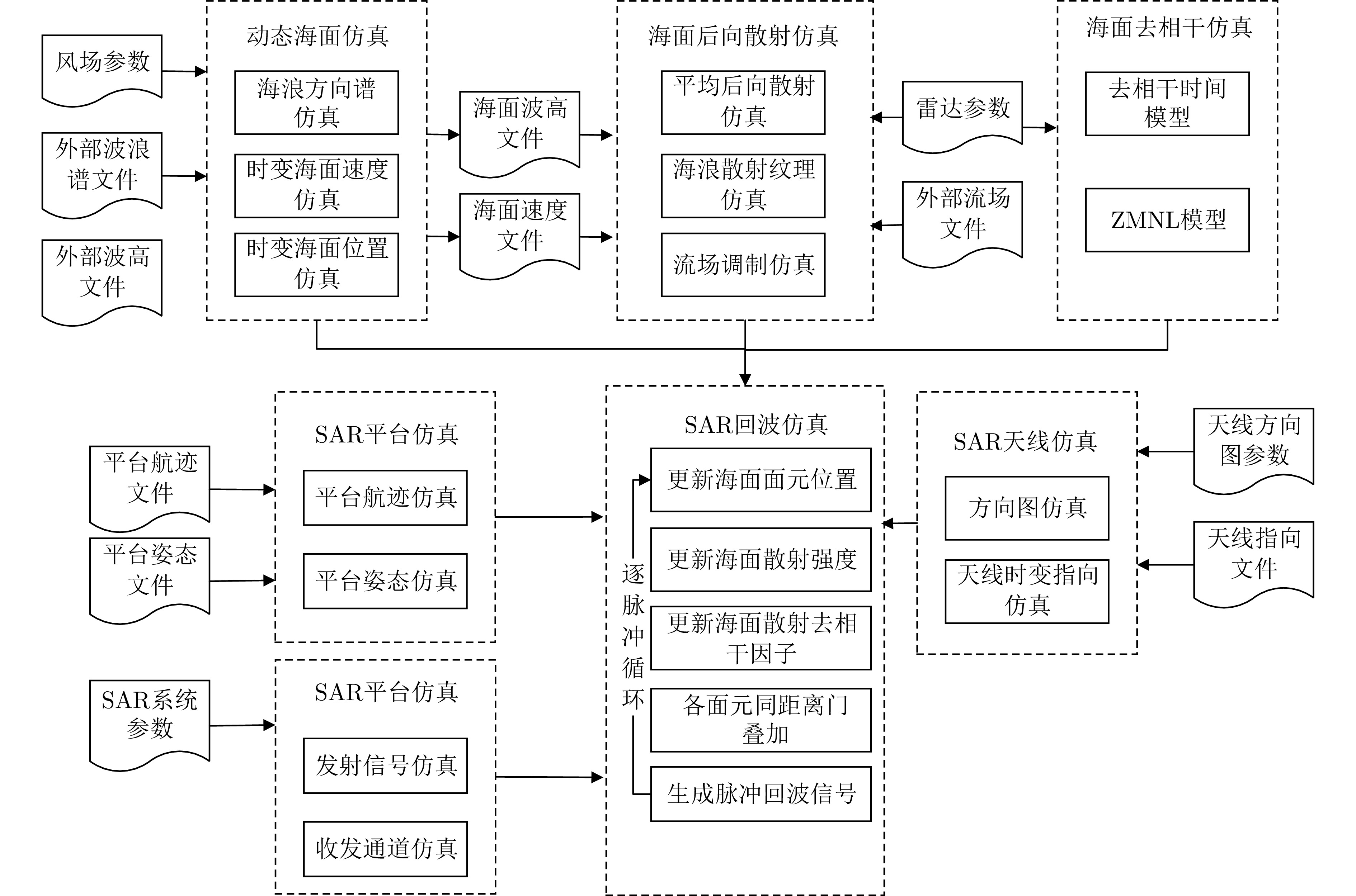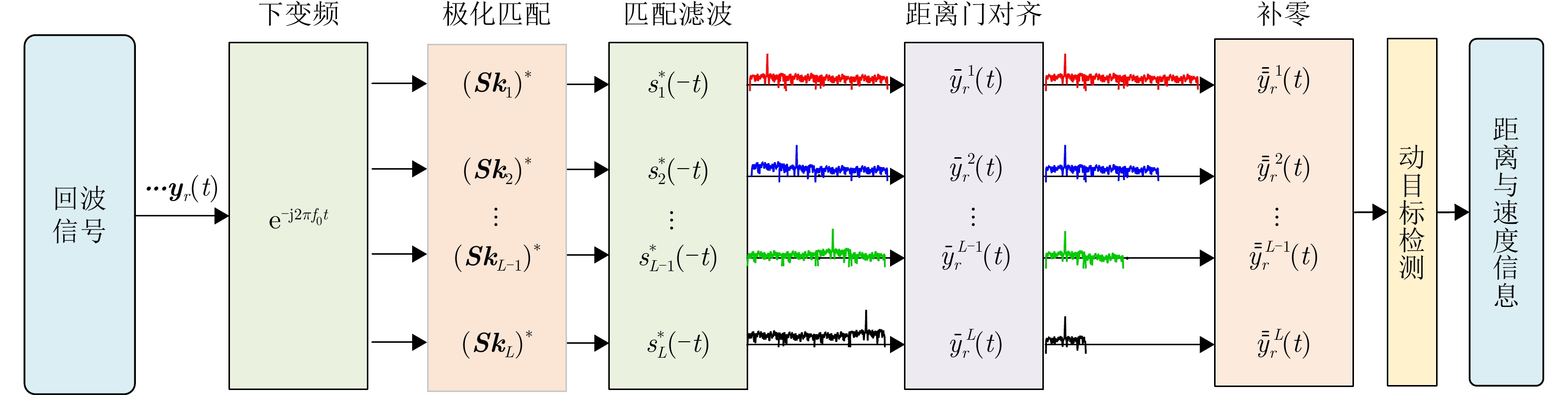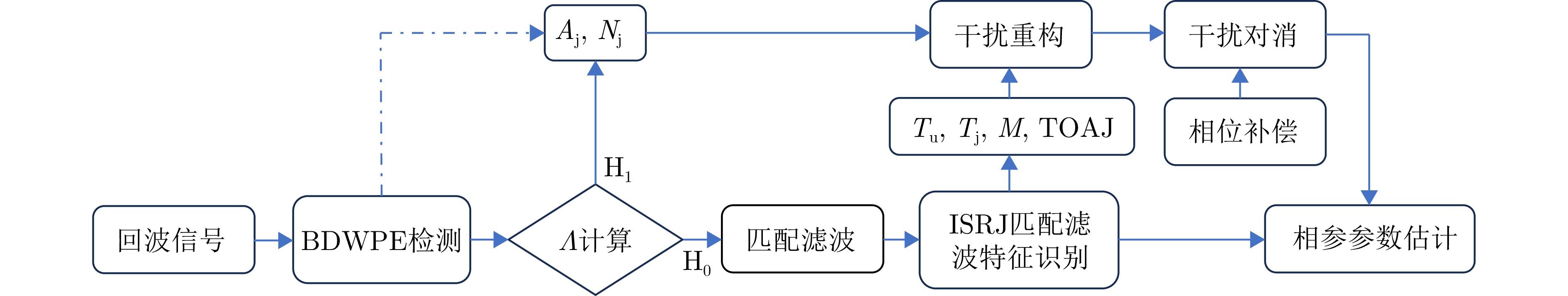 Clutter suppression is an important technology for moving target indication. However, for Bistatic Synthetic Aperture Radar (BiSAR) moving target indication, traditional space-time adaptive processing and displaced phase center antenna methods cannot achieve the expected clutter suppression because of the strong coupling nonlinearity and nonstationarity of clutter. To address the aforementioned challenge, this study proposes a dual-channel clutter cancellation processing method via space-time decoupling for airborne BiSAR. The core lies in establishing the space-time decoupling matrix, which converts the strongly coupled nonlinear two-dimensional space-time spectrum of airborne BiSAR into that with consistent spatial frequency. The proposed method mainly consists of the following steps: (1) To improve the signal-to-clutter-plus-noise ratio of moving targets, the first-order Keystone transformation and high-order range migration correction function are applied to concentrate the energy of moving targets in the same range cell. (2) To weaken the azimuth spectrum expansion effect caused by the motion of bistatic platforms, the Doppler frequency rate term is compensated for each range cell. (3) To achieve clutter cancellation, the space-time decoupling matrix is introduced. The normalized Doppler frequency remains unchanged, and the clutter atoms on the airborne BiSAR space-time plane are linearly transformed into atomic positions with the same normalized spatial frequency. Then, the echo signals of dual channels are subtracted for effective clutter suppression. The effectiveness of the proposed method for airborne BiSAR clutter suppression is demonstrated through simulation and real data processing.
