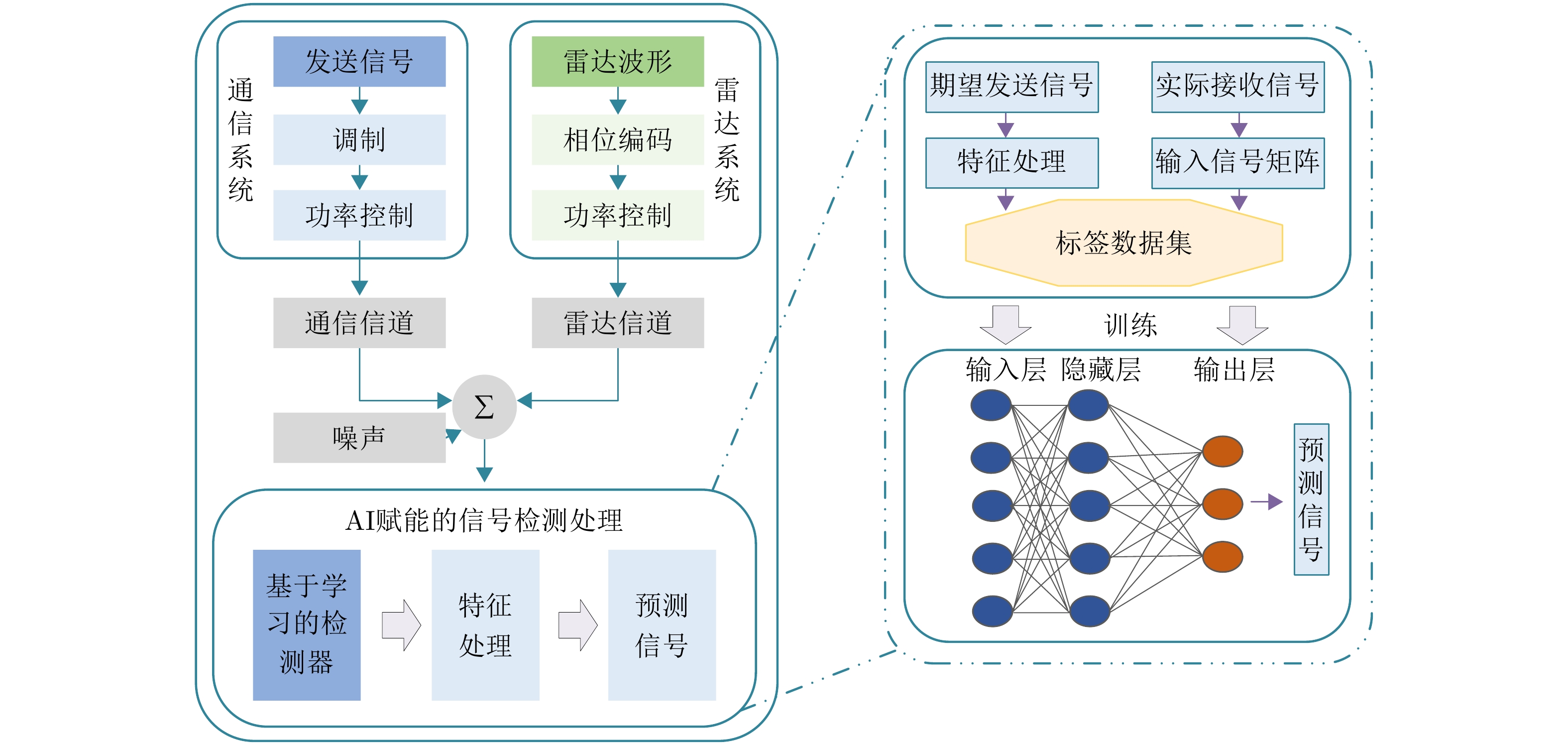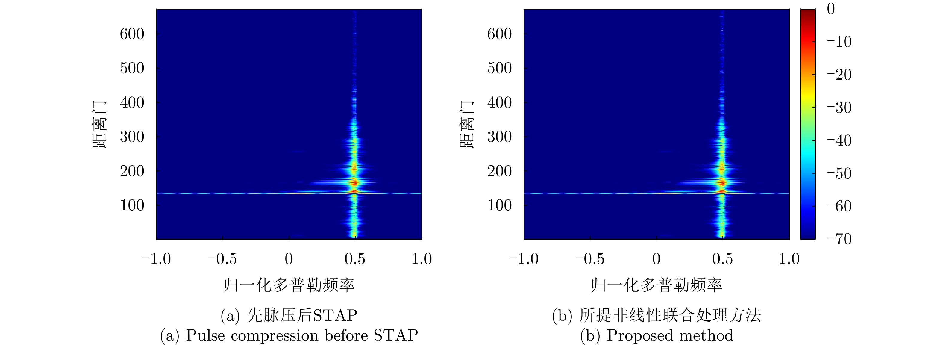 Traditional airborne radar Pulse Compression (PC) and Space-Time Adaptive Processing (STAP) suffer performance degradation in complex target and clutter environments due to their reliance on predefined linear models. To address this issue, we developed a deep learning-based joint STAP-PC technique. This approach employed dedicated networks—a super-resolution space-time spectrum network for nonlinear clutter estimation and a PC network for nonlinear PC. The proposed architecture effectively mitigated model mismatch within the processing chain, leading to improved clutter suppression and target detection. Notably, we mathematically established the feasibility of post-pulse compensation to prevent nonlinear PC from introducing phase errors across elements and pulses. The implemented architecture utilized multimodule convolutional neural networks for super-resolution space-time spectrum estimation and PC, with each module’s functionality demonstrating clear mathematical correspondence, thereby ensuring the reliability of the overall processing chain. Simulation results revealed that in scenarios with dense weak targets and limited samples, the proposed nonlinear joint processing technique improved signal-to-clutter-plus-noise ratio by approximately 20 dB over traditional methods.