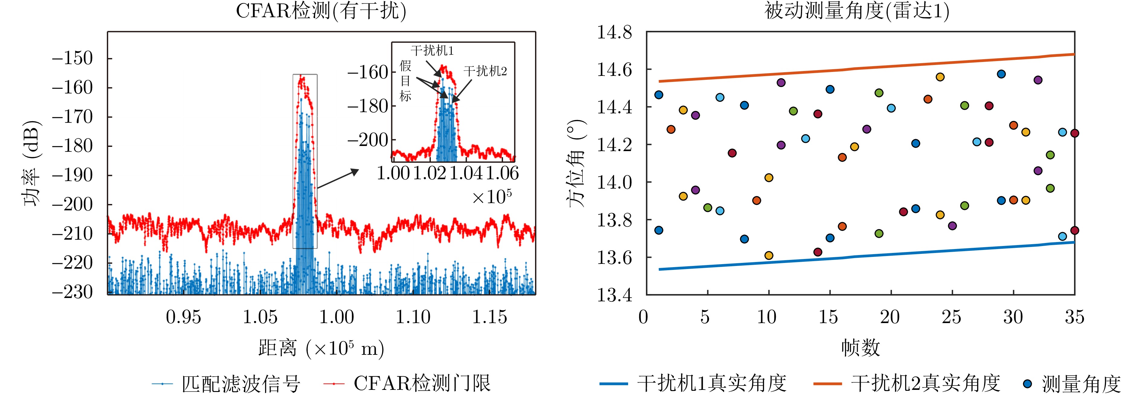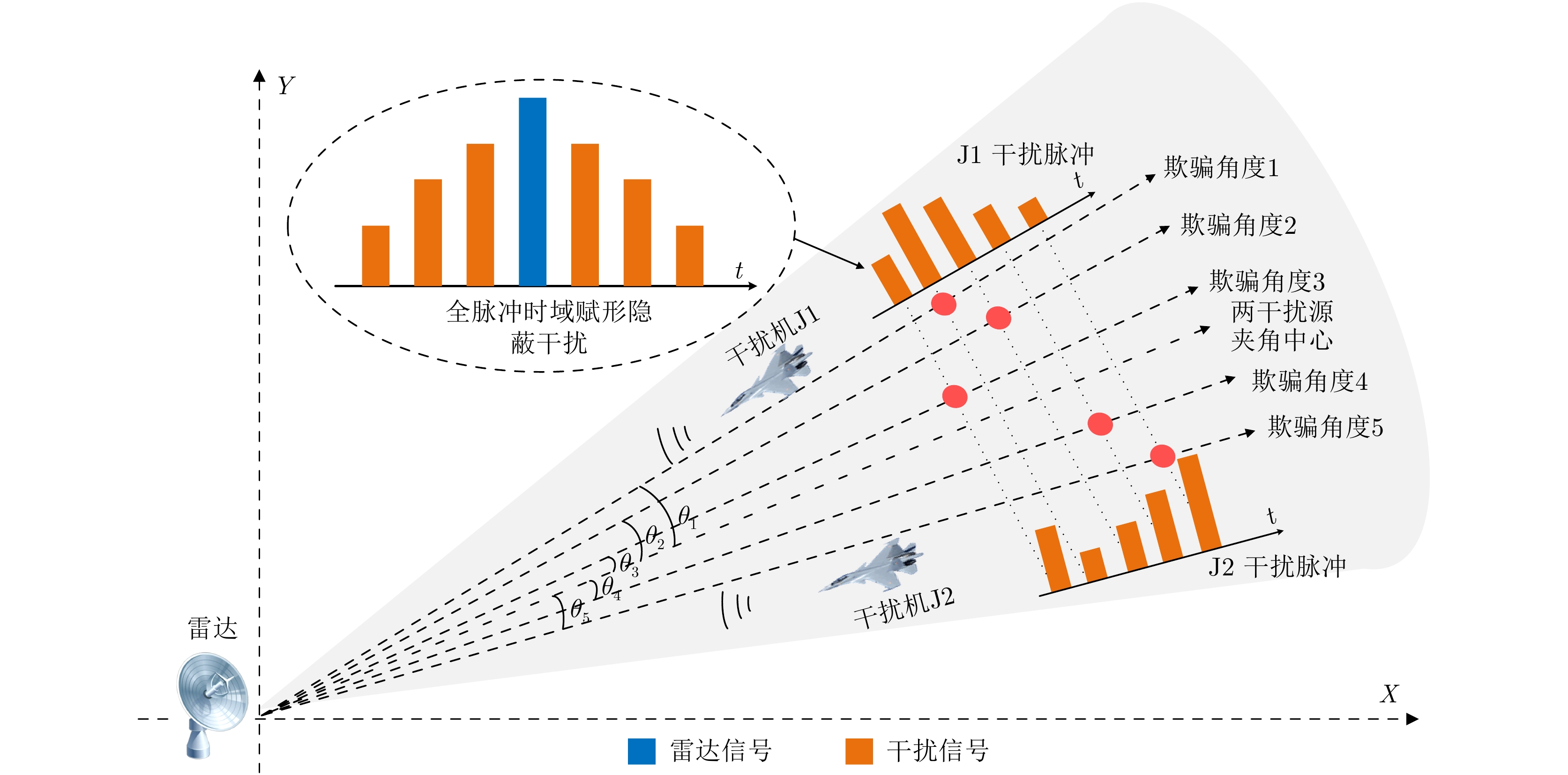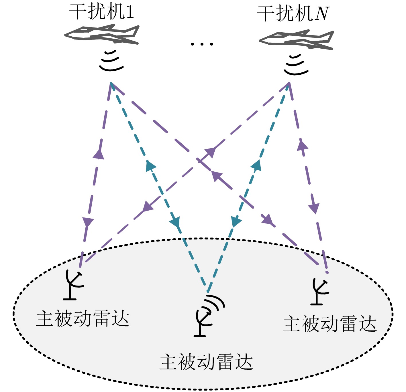 In an increasingly complex electromagnetic environment, the composite detection of active-passive radar, with its excellent complementary advantages, has become an important working mode for enhancing the combat capability and anti-interference capability of radars. The traditional single suppression or deception jamming method can only produce effective jamming in active or passive radar mode, and a good jamming effect is difficult to produce on the composite detection of active-passive radar. In order to improve the jamming ability of active-passive radar composite detection, this paper proposes a full-pulse multi-jammer cooperative jamming method for active-passive radar composite detection. By analyzing the principle of Constant False Alarm Rate (CFAR) detection in radar active mode, the power series and position spacing distribution of multiple false targets is adjusted through the correlation between radar detection probability and signal-to-noise ratio, and the full-pulse time-domain rendering covert jamming model is constructed to effectively suppress the radar active mode. At the same time, by analyzing the principle of angle direction finding in radar passive mode, a cooperative jamming strategy based on multiple jammers is proposed, which dynamically adjusts the transmitting power of jammers and generates multiple random deception angles among the jammers to realize the multi-angle deception effect in radar passive mode. Finally, through the organic combination of the aforementioned two strategies, a full-pulse multi-jammer cooperative jamming method is constructed to achieve effective jamming in active-passive radar composite detection. The experimental results show that compared with the traditional single suppression or deception jamming methods, the proposed full-pulse multi-jammer cooperative jamming method can effectively increase the detection threshold of radar CFAR and, reduce the detection probability in the radar active mode. At the same time, different false angles are generated in each frame near the jammer to expand the range of angle deception, to comprehensively improve the jamming performance of active-passive radar composite detection.
