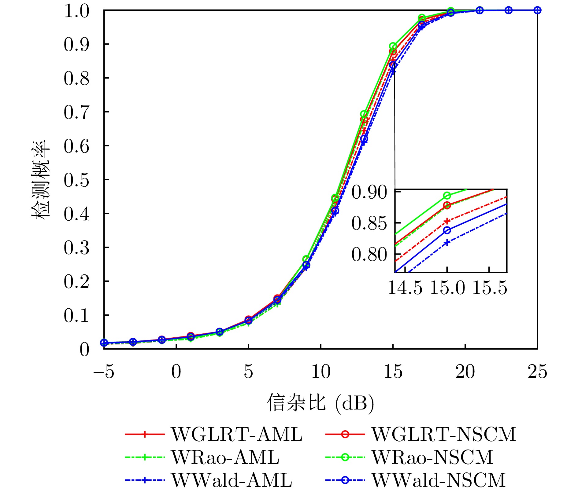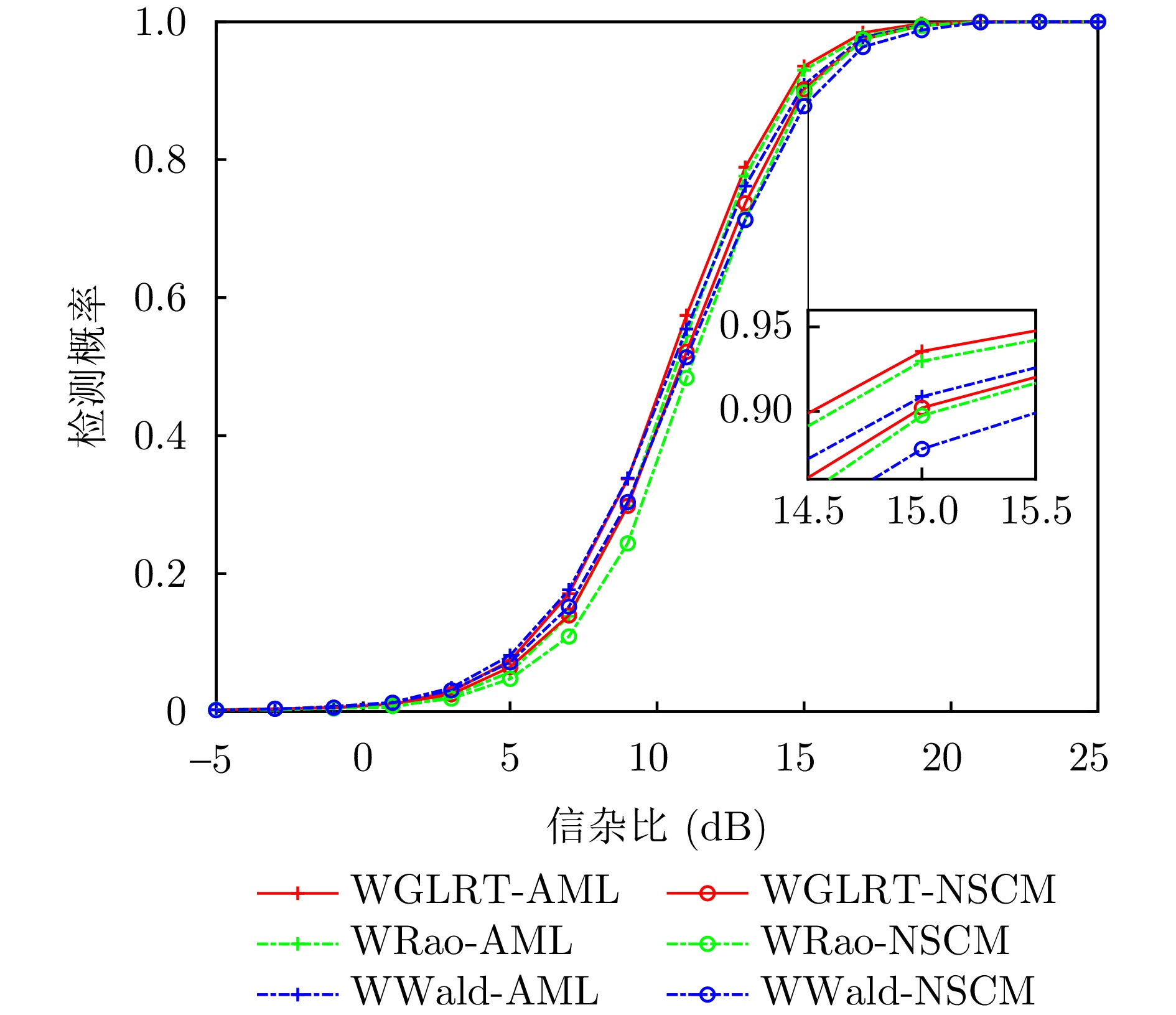 In this paper, we investigate the adaptive detection of range-distributed targets in compound-Gaussian clutter, where the texture component follows a Weighted Generalized Inverse Gaussian (WGIG) distribution. We propose adaptive detectors for WGIG-distributed clutter based on two-step Rao, Wald, Durbin, and Gradient tests. The unknown covariance matrix is estimated using Approximate Maximum Likelihood (AML) and the Normalized Sample Covariance Matrix (NSCM). To address the analytical intractability of Maximum A Posteriori (MAP) estimation for the texture component, we adopt an alternative approach: The MAP estimator of the reciprocal expectation of the texture component, which is used in designing adaptive detectors based on the Rao, Wald, and Durbin tests. For the Gradient test-based detector, the test statistic is derived directly from the posterior probability density function. Our theoretical analysis confirms the consistency of the detectors derived from the Rao, Durbin, and Gradient tests. Extensive evaluations on both simulated and real data yield three key findings: (1) The proposed AML-based detectors maintain the constant false alarm rate property; (2) Under matched signal conditions, the detectors based on the Rao and Wald tests achieve the best performance on both the IPIX radar dataset and the Journal of Radar’s maritime surveillance dataset—specifically, they outperform the two-step generalized likelihood ratio test-based detector, requiring 0.1~0.5 dB and 0.7~0.8 dB lower Signal-to-Clutter Ratio (SCR) to achieve the same detection probability, respectively; and (3) Under mismatched signal conditions, the Rao test-based detector with AML estimation exhibits superior robustness, while the Wald test-based detector demonstrates the strongest suppression capability against mismatched signals.