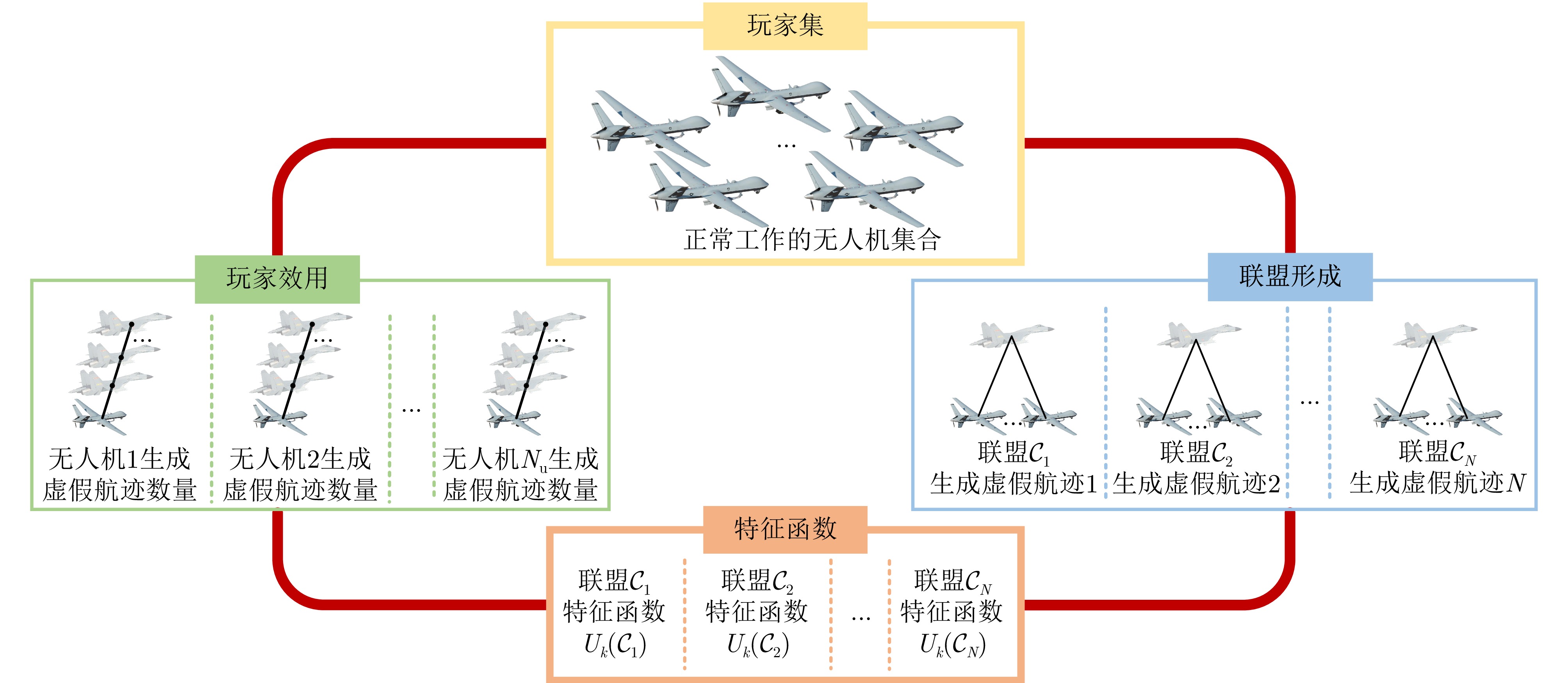 To address interruptions in phantom tracks caused by platform failures or damage during Unmanned Aerial Vehicle (UAV) swarm deception operations against radar networks, this study proposes a game theory-based joint optimization algorithm for UAV swarm task allocation and trajectory planning. A decentralized swarm cooperation mechanism is designed to create a cooperative game model for UAV phantom track deception against radar networks. Based on the radar network homology test criterion, an optimization model is developed to maximize the utility function of the phantom track deception game, subject to constraints on UAV swarm kinematic performance and task allocation requirements. The existence and convergence of a Nash equilibrium are rigorously proven using exact potential game theory. To address the resulting non-convex, non-linear, mixed-integer optimization problem, an iterative algorithm is developed that combines distributed coalition game theory with a genetic algorithm. The simulation results demonstrate that, compared with existing approaches, the proposed algorithm effectively replans deception tasks and trajectories in response to platform failures or damage, thereby enhancing the continuity and effectiveness of phantom track generation against radar networks.