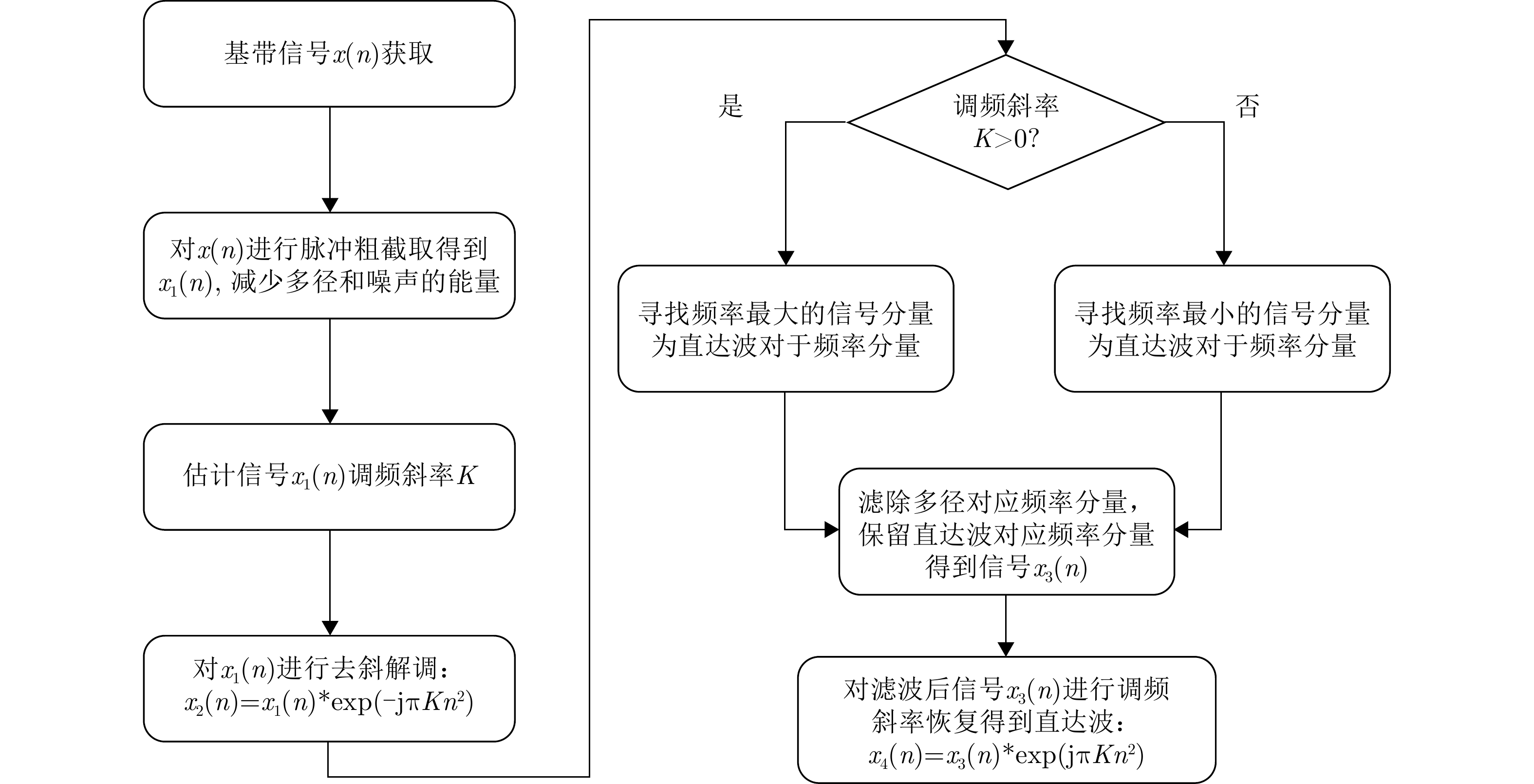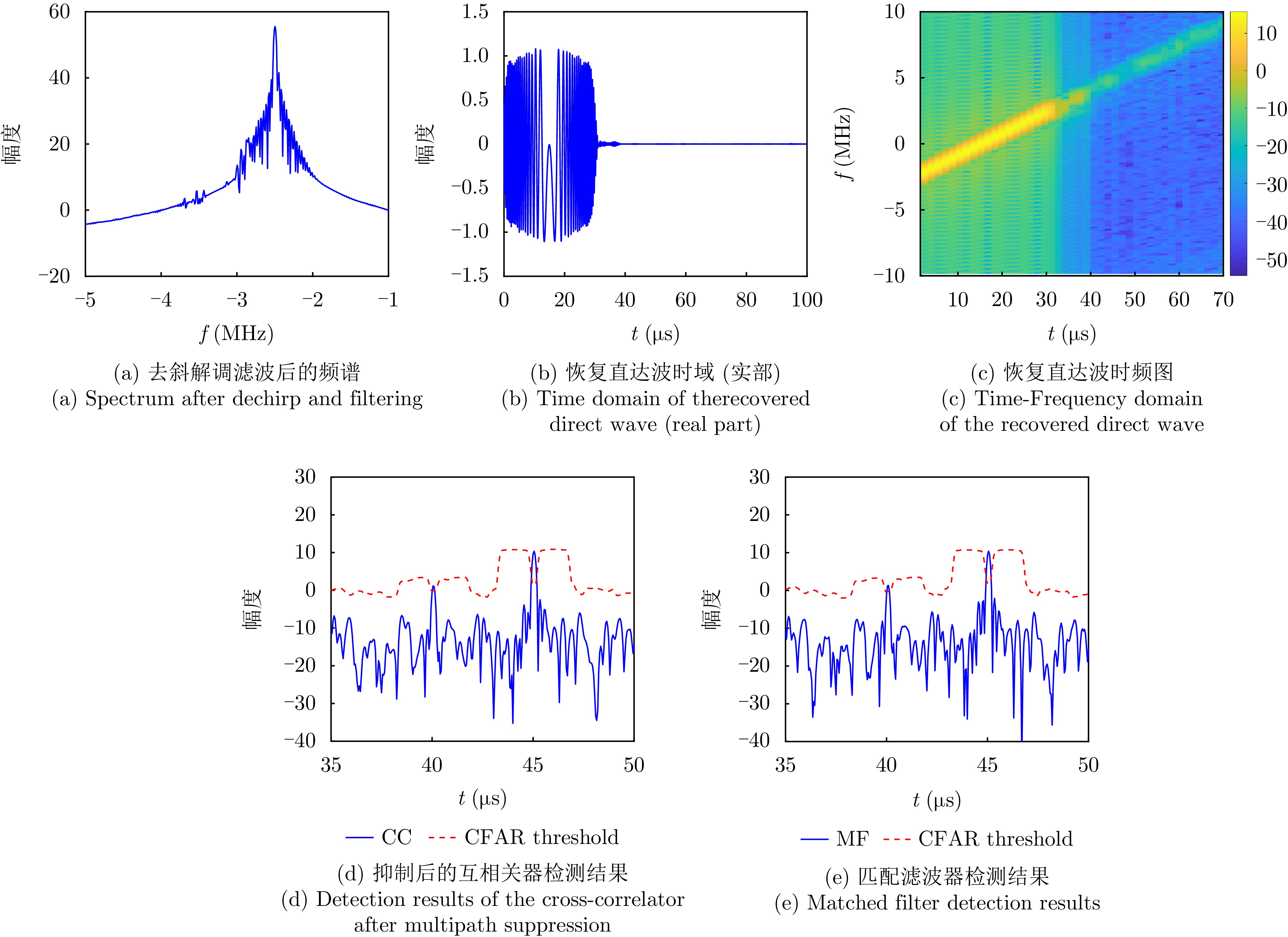 Non-cooperative bistatic radar exhibits significant application value for both civilian and military applications due to its anti-stealth and anti-jamming capabilities. However, its practical implementation faces challenges from unavoidable multipath interference and noise contamination in reference signals, stemming from uncontrollable radar illuminators and complex geographical environments. These effects substantially degrade the performance of cross-correlation processing between reference and echo signals compared with the ideal matched filter, resulting in stationary false targets. Such issues remain a critical bottleneck to operational deployment. This study systematically addresses these challenges by analyzing cross-correlation degradation under multipath and noise in the reference channel, and by establishing a quantitative mapping between multipath intensity, noise power, and detection probability. For Linear Frequency Modulated (LFM) signals, a dechirp-based multipath suppression algorithm is proposed. The algorithm exploits the inherent properties of LFM signals, transforming multipath components with different delays into distinct frequency offsets. Compared with mainstream Fractional Fourier Transform methods, this approach exhibits greater frequency separation among multipath components, enabling effective suppression with significantly reduced filter orders. The algorithm outperforms conventional methods in improving overall detection probability. Measured data processing in practical field-test scenarios (direct-path signals overwhelmed by strong multipath interference) validates the method’s efficacy in eliminating false targets, correcting range offsets, and enhancing detection probability.
