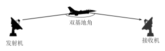 双基地雷达可以定义为发射机和接收机互相分离的雷达系统,而其双基地角定义为发射机到目标连线和接收机到目标连线的夹角。如果双基地角大于135°,则接收机位于目标的前向散射区,在这个区域内,目标的雷达散射截面积(Radar Cross Section,RCS)随双基地角的增大而迅速增大,通常比单基地RCS大十几到几十dB,当双基地角等于180°时,目标RCS达到最大值。我们将接收机工作于目标前向散射区的雷达称为前向散射雷达(Forward Scatter Radar,FSR)[3, 4],其典型系统结构如图 1所示。FSR利用了目标RCS在前向散射区所体现出的诸多特性,对反隐身和小型目标探测具有重要意义。