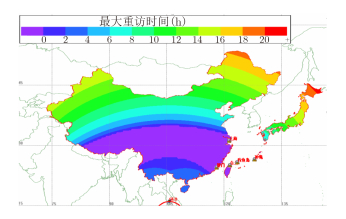 图 20 GEO SAR对中国及邻近区域的重访时间 Fig.20 Revisit time of GEO SAR to China and neighboring regions |