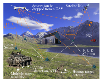 近些年来隐身技术也开始广泛应用于地面/海面运动目标(如战车、坦克、舰船等)。考虑到FSR对弱RCS目标探测的优势,通过设计体积小、功耗低、易于布置且难以被发现的小型FSR并组网布置,可以实现对特定区域的势态感知,如图 3所示,在对地面车辆、海面舰艇探测方面具有一定优势[14]。进入21世纪以来,在英国伯明翰大学,由M. Cheniakov带领的MISL(Microwave Integrated Systems Laboratory)实验室开展了一系列有关前向散射雷达地面/海面运动目标探测的研究工作,并通过国际合作交流的方式发展了马来西亚、保加利亚、意大利及中国的科研人员参与到FSR的研究中来。伯明翰大学开发的小型多频FSR系统可以工作于VHF和UHF波段,使用包络检波从直达波中提取目标的散射信号[15]。