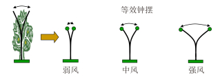 为解释杂波统计分析中一些独特的现象,结合前向散射雷达回波多普勒信号的形成条件,提出了利用钟摆模型对植被杂波的强度和谱扩展特性进行定性的解释。如图 7所示,前向散射雷达的植被杂波可以采用单摆振子模型来建模分析解释,等效为大量的单摆振子进行无规则的单摆振动,摆动幅度随风速变化;每个单摆振子具有自己固定的摆动周期,也即具有自己固定的振荡频率,在接收端形成具有接近各自振荡频率的整个杂波信号。钟摆模型下定性解释和理论分析得到的结果与实测数据处理结果的一致性充分表明了模型的有效性[34]。