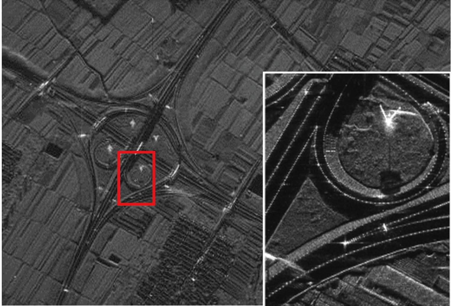 图 16 立交桥高分辨率SAR图像 (Ku波段) Fig.16 High resolution SAR image of overpass bridge (Ku band) |