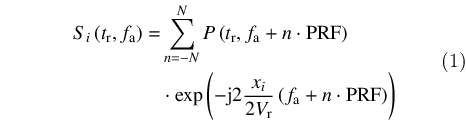 基于信号子空间与噪声子空间的正交性,该文提出一种改进的方位向多通道SAR通道失配校正方法。与文献[4]类似,该方法同样通过特征分解方法估计系统的相位失配。但是在推导过程中考虑了基带多普勒中心的影响,在校正相位失配的同时给出系统基带多普勒中心的鲁棒估计。本文首先介绍了方位向多通道SAR信号模型,然后详细讨论了基于特征分解的多普勒中心估计方法,最后用仿真实验和C频段方位向四通道机载SAR实验数据验证了方法的有效性。