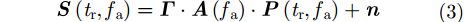 特征分解的思想最初应用在阵列信号处理中,用来确定信号波达方向角的同时估计系统增益-相位误差[15]。文献[4]将类似的处理思路应用到方位多通道SAR信号处理中,实现抑制多普勒模糊的同时估计各个通道的相位失配。本文讨论波束偏离正侧视情况下,多通道SAR系统的基带多普勒中心估计和相位失配校正方法。多通道SAR回波信号在多普勒单元fa处的统计协方差矩阵可以表示为: