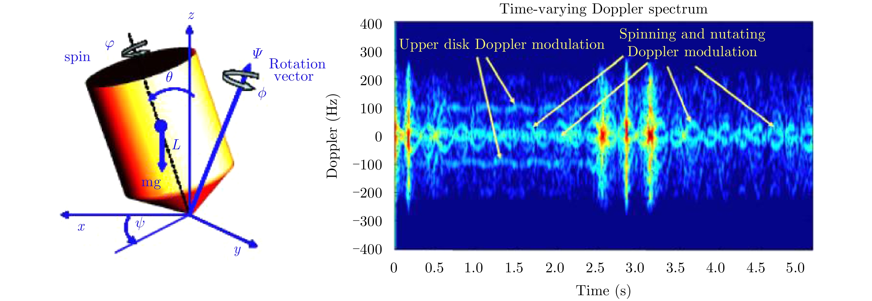 分布式MIMO雷达和组网雷达都具有多个收发通道,能够获得目标在各个视角上的信息。由于目标微动在不同视角上有着不同的投影分量,利用各天线接收到的回波信号差异可望重构目标微动部件的空间3维运动和结构特征,从而提高雷达的目标识别能力。基于这一原理,空军工程大学的罗迎博士研究了基于多载频窄带MIMO雷达[20]与正交频分线性调频(Orthogonal Frequency Division Multiplexing-Linear Frequency Modulation, OFDM-LFM)信号MIMO宽带雷达[21]的旋转目标3维微动特征重构技术,以及基于分布式组网雷达的有翼弹头目标3维进动特征重构技术[22]。文献[45]与文献[46]利用组网雷达的多视角特性构建非线性方程组提取了弹道目标的3维进动特征。