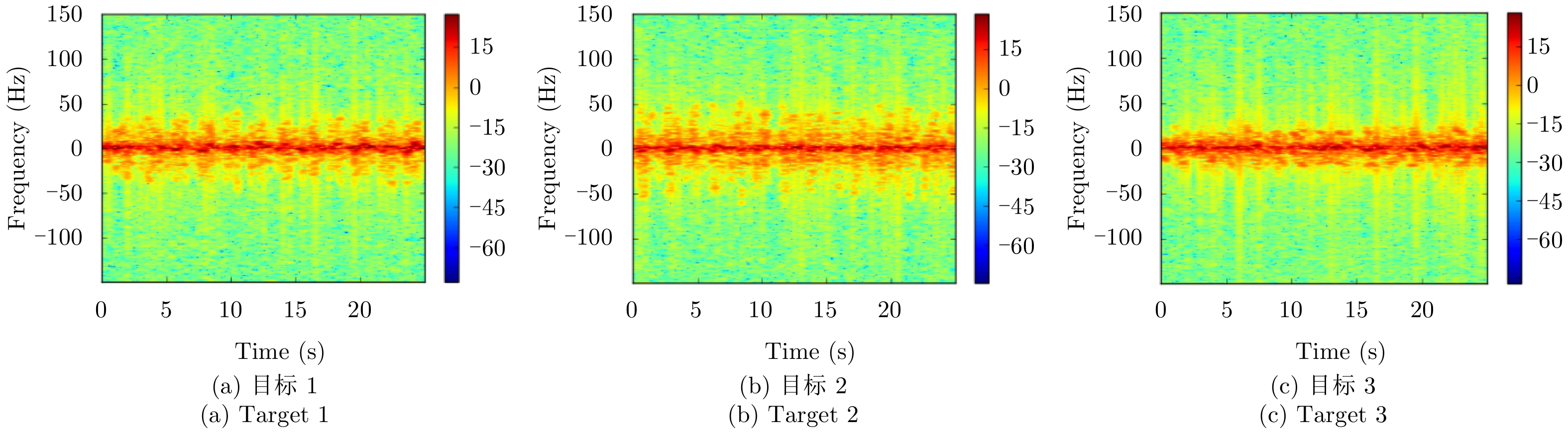 除了孤立目标,雷达还常常面临由多个目标组成的群目标,如导弹突防时由多个弹头、诱饵和碎片形成的群目标,失效载荷、火箭残骸等组成的空间碎片群,空中编队飞行的战斗机/直升机/无人机集群,海面众多的舰船目标以及地面驻停车辆群等。一般地,当多个目标位于雷达发射信号的同一波束范围内时,各目标回波在时域或频域相互叠加,称这多个目标为群目标,群目标中的单个目标称为子目标[16]。构成群目标的各子目标往往运动参数及结构参数均较为相近,但是其微动参数各异,根据目标微动特性差异建立合适的回波模型,有助于更好地从群目标回波中分离出各子目标回波分量,实现各子目标微动特征提取。在理想条件下,群目标的微动回波可近似看作是各子目标回波之和,如文献[17]提出了多目标微多普勒(Multi-target Micro-Doppler, MMD)的概念,并建模研究了振动/旋转群目标的分辨方法;文献[18]研究了弹道群目标分辨及微动特征提取方法。但在实际应用中,还需考虑各子目标相互之间的电磁耦合作用,这一工作还有待进一步地深入研究。
