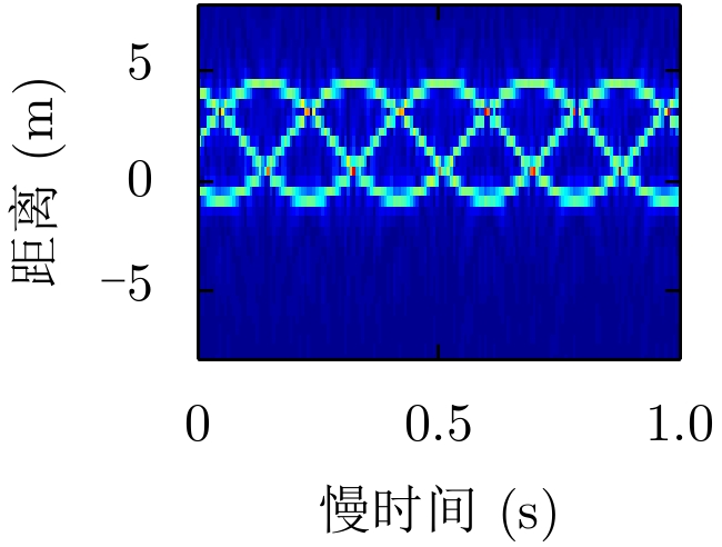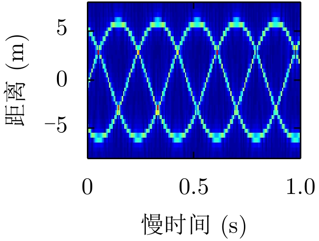 在宽带成像雷达中,由于雷达的距离高分辨能力,目标径向微动幅度有可能远大于雷达的距离分辨单元,因此在完成回波平动补偿后,目标的微动通常导致散射点发生越距离单元走动,目标回波在1维高分辨距离像(High Resolution Range Profile, HRRP)序列中呈现为对应于各微动散射点径向微动历程